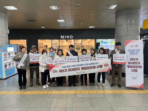 [금요저널] 양주시는 13일 덕정역사 내에서 미세먼지 저감 시민참여단과 함께 제5차 미세먼지 계절관리제 홍보 캠페인을 진행했다.