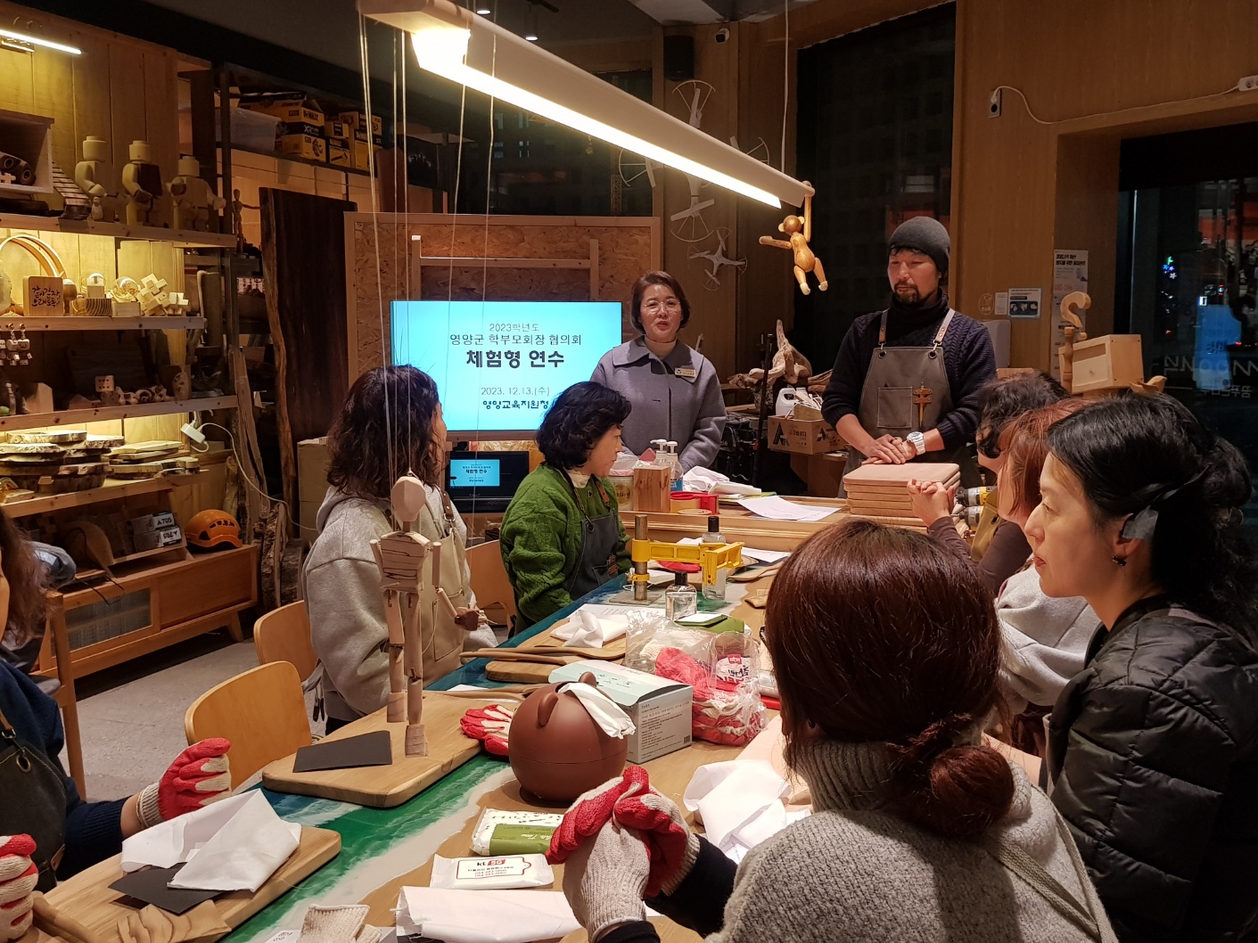□ 경상북도 영양교육지원청(교육장 김유희)은 13일(수) 영양군 목공 체험 공방 ‘나무’에서 관내 초, 중, 고등학교 학부모회장 13명이 참석한 가운데 2023학년도 영양군 학부모협의회 체험형 연수를 실시했다.