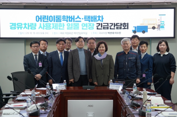 [금요저널] 더불어민주당 인천 연수갑 박찬대 의원은 어린이통학버스·택배차량의 경유차 사용금지 시작을 앞두고 현장 종사자들의 의견 청취와 정부의 입장을 논의하는 긴급간담회를 13일 오후 국회에서 개최했다.