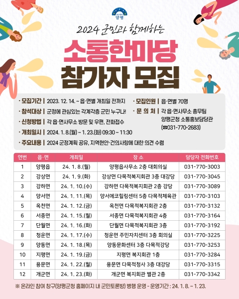 양평군, 2024년 군민과 함께하는 소통한마당 참가자 모집