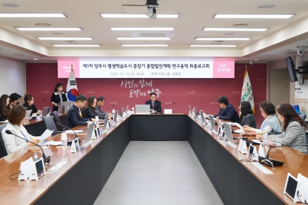 [금요저널] 양주시는 지난 13일 강수현 시장을 비롯한 복지문화국장, 교육체육과장 등 관계 공무원 및 용역 수행기관 관계자 등 20여명이 참석한 가운데 ‘제1차 양주시 평생학습도시 중장기 종합발전계획 연구용역 최종보고회’를 개최했다고 밝혔다.