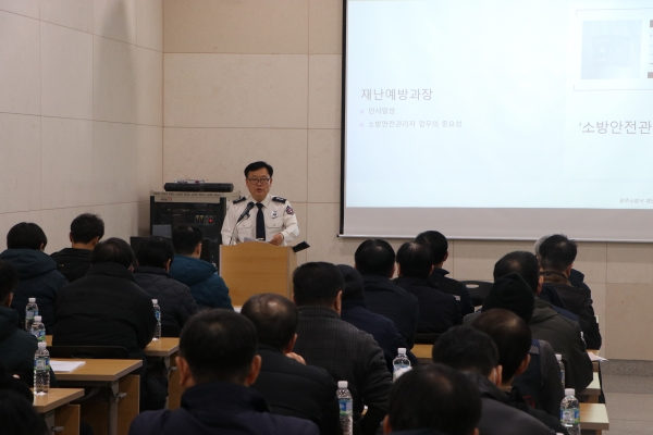 교육 내용으로는 겨울철 화재 안전대책 설명 및 협조 요청 세대별 피난계획 수립 및 피난 행동 요령, 피난 안전 매뉴얼 자체 점검 내용 중 세대 점검 관련 사항 안내 변경된 소방계획서 작성 지도 사소한 부주의 화재예방 홍보 주택용 소방시설 의무 설치 안내 등으로 진행됐다.