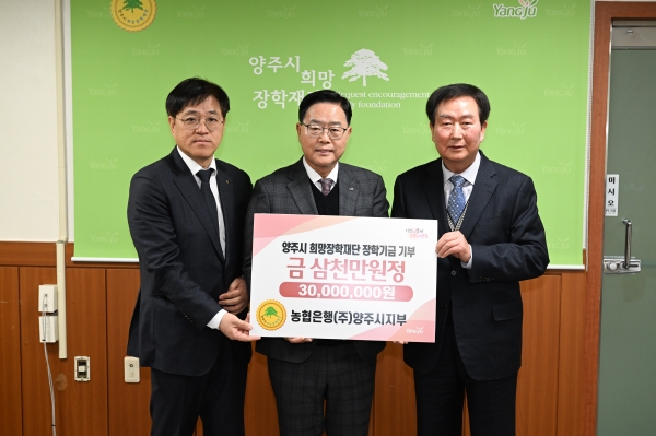 [금요저널] 양주시는 NH농협은행 양주시지부가 양주시희망장학재단으로 장학기금 3천만원을 기탁했다고 20일 밝혔다.