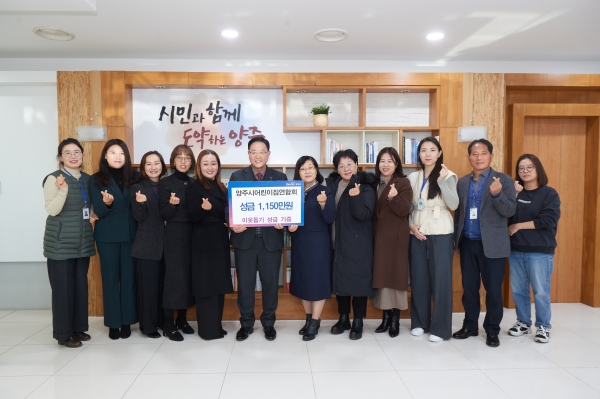 [금요저널] 양주시가 오늘 21일 ‘양주시어린이집연합회’에서 관내 취약계층을 돕기 위한 이웃돕기 성금 1,150만원을 전달하기 위해 양주시청을 방문했다고 밝혔다.