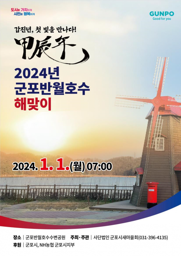 주최자인 군포시새마을회는 “계묘년 해맞이를 주최한 경험을 바탕으로 갑진년 첫날에도 시민들이 함께 모여 따뜻한 정과 희망찬 새해 소망을 기원할 수 있도록 최선을 다하겠다”고 다짐을 밝혔다.