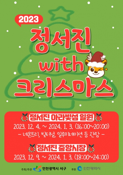 특히 서구의 대표 관광지인 정서진에서는 ‘정서진 With 크리스마스’ 행사와 더불어 ‘빛나는 내일 눈부신 우리’라는 테마의 2023 정서진 해넘이 행사도 즐길 수 있다.
