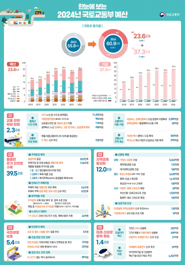 [금요저널] 국토교통부는 12.21일 국회 본회의 의결을 거쳐 ‘24년 예산이 확정됐다고 밝혔다.