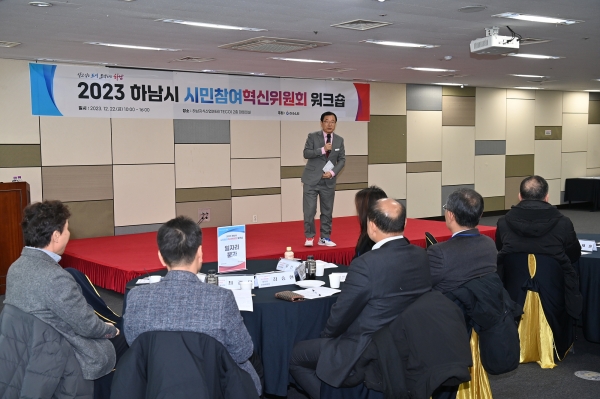 [금요저널] 하남시가 최근 하남아이테코 대회의실에서 시민참여 혁신위원회 소속 위원과 관계 공무원 등 50여명이 참석한 가운데 위원회 역량 강화 및 활동성과 점검을 위한 ‘시민참여 혁신위원회 워크숍’을 개최했다고 26일 밝혔다.