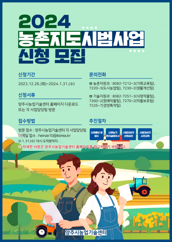 양주시, 2024년 농촌지도시범사업 신청자 모집