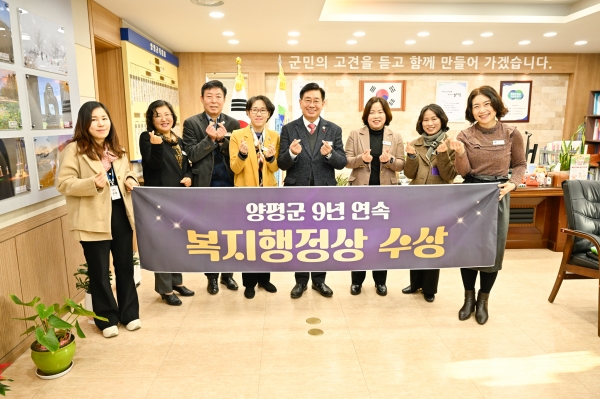 이번 수상으로 양평군은 9년 연속 수상의 영예를 차지했다.