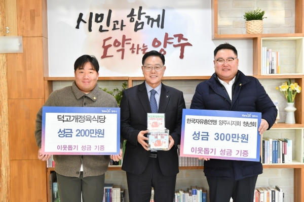 한국자유총연맹 양주시지회 청년회에서는 300만원을 기부했으며 덕고개정육식당 이두현 대표는 식당에 설치된 기부모금함에 모인 200만원을 전달하며 훈훈함을 전했다.