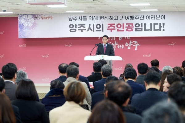 강수현 시장은 송년사를 통해 “한 해 동안 각 분야에서 묵묵히 열심히 활동하면서 양주시를 빛내 수상의 영예를 안은 모든 유공자 여러분께 진심으로 감사의 말씀 드린다”며 “2024년 갑진년에도 여러분이 보여주신 양주에 대한 열정과 에너지를 토대로 시민과 함께 도약하는 양주를 만들기 위해 노력하겠다”고 전했다.