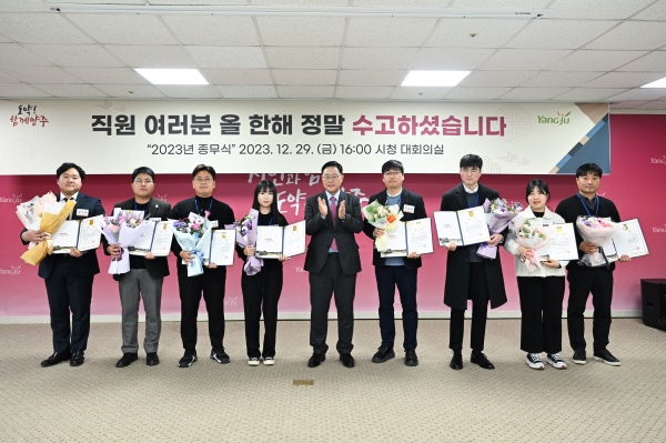 [금요저널] 양주시가 2023년도 민원처리 마일리지 우수공무원 12명을 선발하고 지난 29일 종무식에서 상장 수여식을 가졌다.