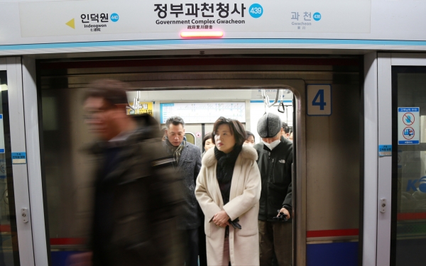 이날 신계용 시장이 탑승한 열차는 올해 1월부터 추가 증편돼 운행되는 열차로 출근시간대 증차를 위해 과천시가 노력한 부분이 반영된 성과이다.