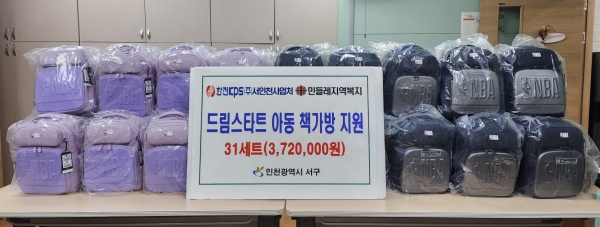 이번 책가방 지원은 한전KPS서인천사업처와 민들레 지역복지의 후원을 받아 추진됐으며 372만원 상당의 입학 책가방 세트가 마련됐다.