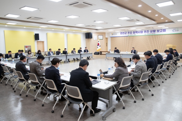 [금요저널] 연천군은 4일 군청 상황실에서 김덕현 연천군수, 우종민 부군수 및 실·과·사업소 부서장 등 30여명이 참석한 가운데 ‘주요 정책사업 추진 상황 보고회’를 개최했다.