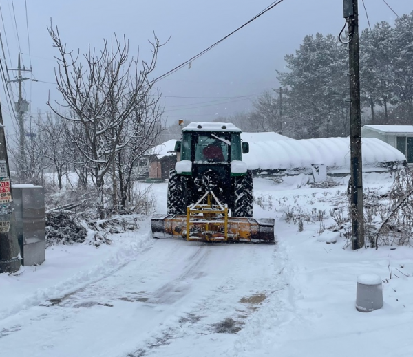 제설작업은 자원봉사자 소유의 트랙터, 트럭으로 실시되며 군에서는 제설삽날 구매, 교체 등을 지원하고 안전사고 발생에 대비하기 위해 단체 상해보험을 가입했다.
