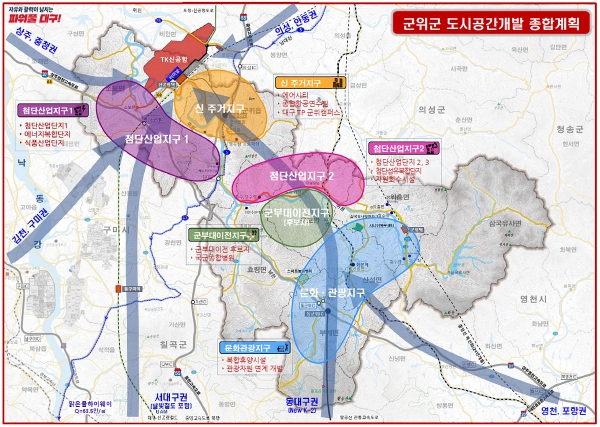 [금요저널] 대구광역시는 대구경북신공항 개항에 대비하고 군위군을 TK 미래 100년을 이끌 ‘글로벌 신공항 관문’으로 발전시키기 위한 ‘군위군 도시공간개발 종합계획’을 수립했다.