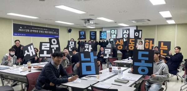 남동문화재단은 최근 지난해 추진한 ‘남동 문화예술진흥 정책연구’의 결과 공유와 2024년 전략목표 수립을 위해 임직원이 조직 활성화를 위해 머리를 맞대는 ‘팀 빌딩’ 프로그램을 진행했다고 15일 밝혔다.