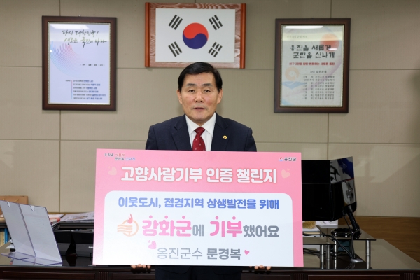 문경복 군수의 챌린지 참여는 북한의 잇따른 안보 위협을 받는 옹진군에 이번 챌린지가 힘이 되고 서초의 따스한 마음이 전해지길 바라는 마음을 담은 전성수 서초구청장의 옹진군 고향사랑 기부와 함께 챌린지 주자 지목으로 이뤄졌다.