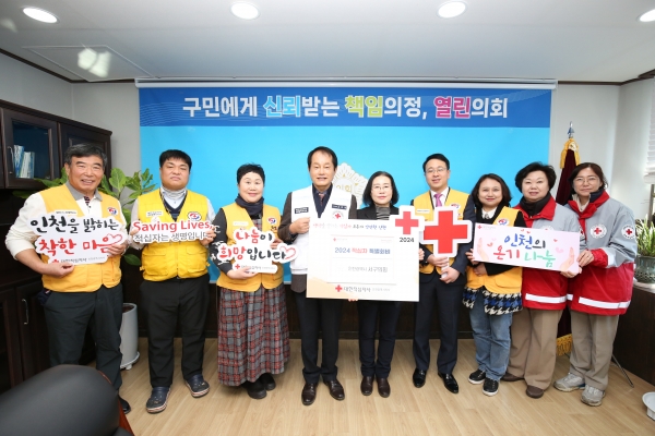 [금요저널] 인천 서구의회가 23일 대한적십자사 인천지사에 2024년 적십자 특별회비를 전달하고 따뜻한 나눔문화 확산에 동참했다.