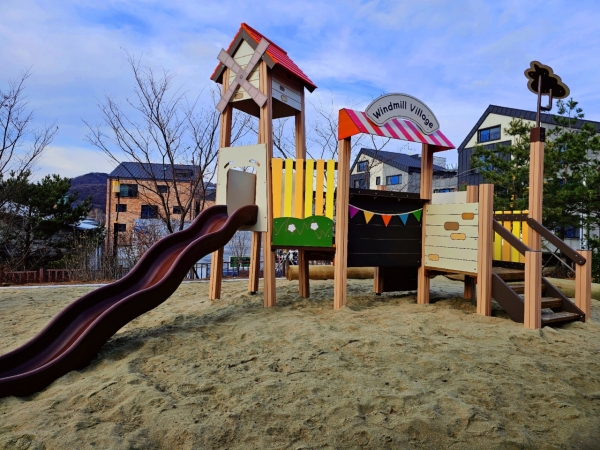 놀이터별로는 자연숲, 기차, 놀이블록, 풍차 등의 테마를 적용했으며 놀이터 주변 녹지대에는 지피식물, 관목 등을 심고 벤치, 파고라 등의 시설물도 함께 배치해 놀이와 휴식을 함께 할 수 있는 공간으로 만들었다.