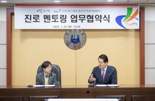 강범석 서구청장은 “서구 관내 학생의 건강한 미래 인재로의 성장을 위해 ‘인하 진로센터’와 같이 협력하게 되어 기쁘게 생각한다”며“아이들이 성장하는 시기에 진로 멘토링이 자신들의 미래를 구체화하는 데큰 도움이 되길 바란다”고 밝혔다.