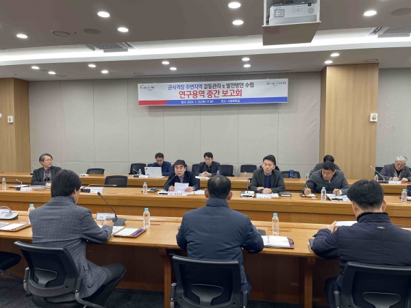 이날 중간보고회에서는 공익사업 개발 후 발생하는 수익을 통한 피해지역 주민 소득증대사업과 복지사업 등을 제공하는 방식으로 실질적인 지원 효과를 창출하는 공공체육시설 및 K-방위산업과 연계한 클러스터 조성 등 포천시의 지역 특성을 고려해 민군이 상생 발전할 수 있는 방향을 위주로 보고가 이루어졌다.