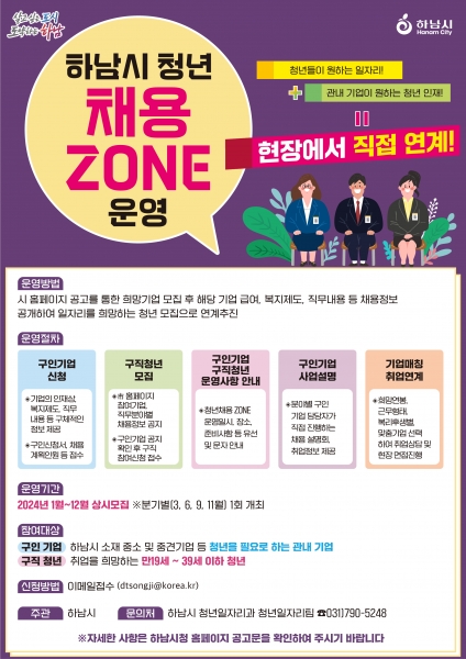 [금요저널] 하남시가 기업의 구인난 해소와 청년 취업률 제고를 위한 ‘2024년 하남시 청년 채용 존’을 운영한다.