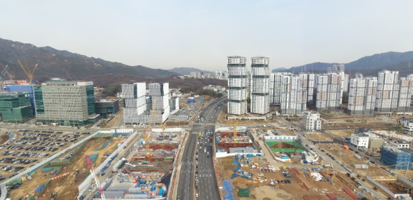 과천대로 지식정보타운 S4BL앞에 있는 갈현고개사거리는 최근 지식산업단지에 입주하는 기업이 늘면서 교통량이 증가해 출근 시간대 상습 정체가 발생하고 있다.