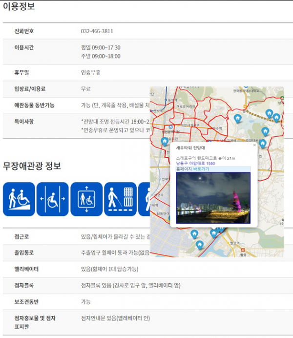 세부적으로는 소래포구, 인천대공원, 소래습지생태공원 등 남동구 관광지 위치 및 연락처, 운영시간 등 이용 정보부터 장애인 편의시설. 블로그 리뷰 등 관광객들이 필요로 하는 다양한 정보를 제공한다.