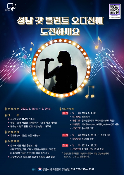 오디션 신청은 성남시청 홈페이지나 성남시 오디션 블로그를 참조해 이메일로 하면 된다.