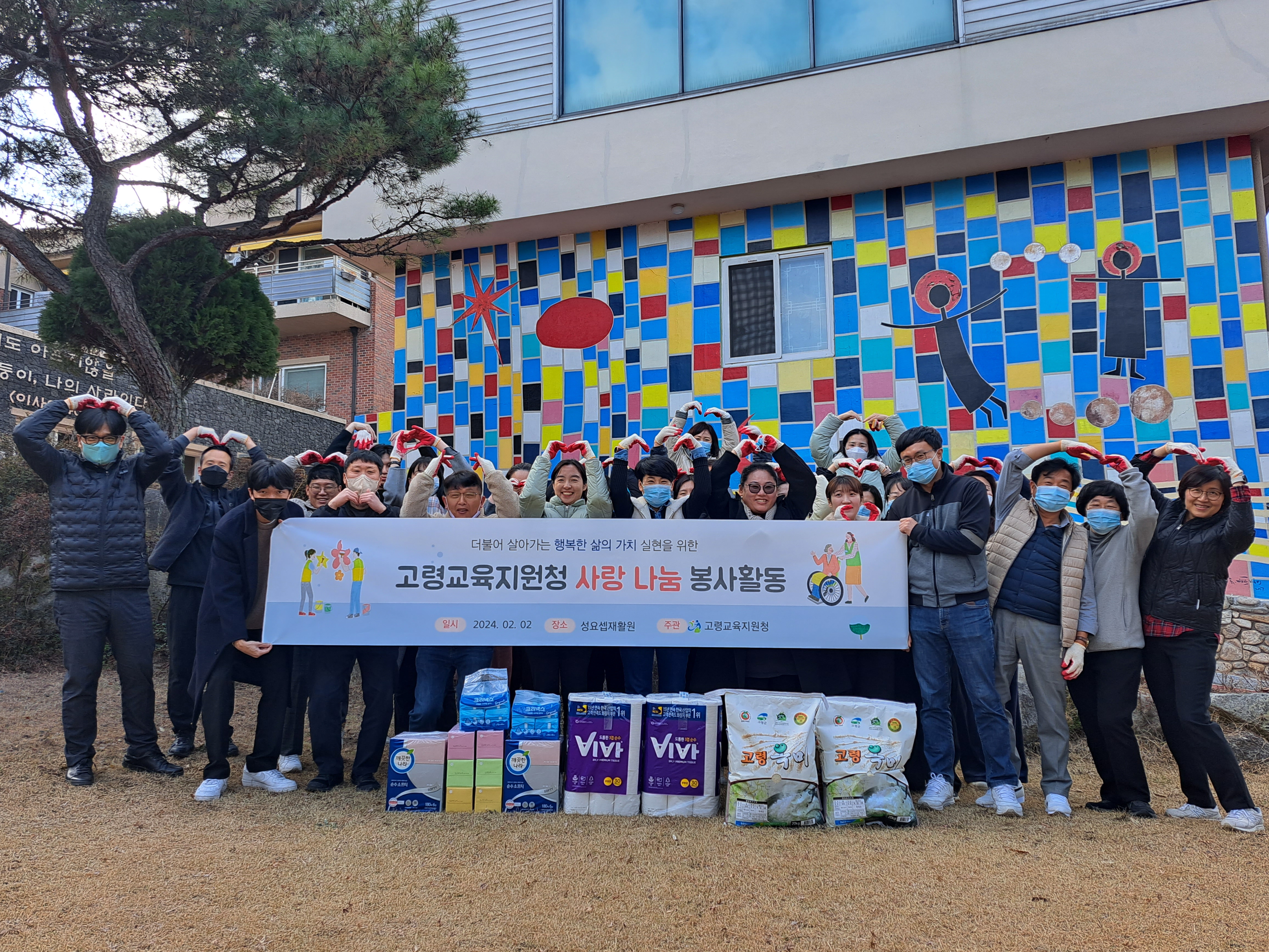 고령교육지원청(교육장 김호상)은 2월 2일(금) 민족 대명절 설을 앞두고 따뜻한 나눔과 사랑을 실천하고자 사회복지시설을 방문해 위문품을 전달하고 전 직원이 함께 봉사활동에 참여했다