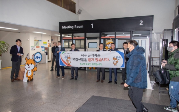 서구는 지난 5일 서구청 로비에서 출근길 직원들을 대상으로 ‘설 명절 청렴캠페인’을 실시했다.