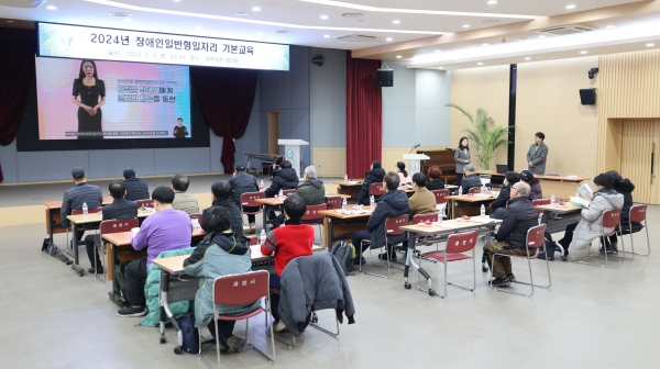 [금요저널] 과천시는 6일 시청 대강당에서 ‘2024년 장애인 일반형 일자리사업’ 참여자 24명을 대상으로 하는 필수 기본교육을 실시했다.