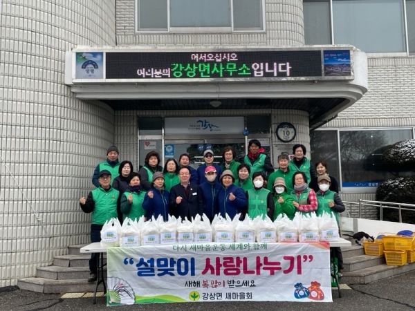 이어 정영석 강상면장은 “매년 우리 주변의 어려운 이웃들에게 온정의 손길을 나누고 있는 새마을 회원분들의 노고에 깊은 감사를 드린다”며 “강상면은 유관단체와 협력해 지역 내 소외되고 어려운 이웃들에게 지속적인 관심을 갖고 나눔 행사들이 이어질 수 있도록 힘쓰겠다”고 전했다.