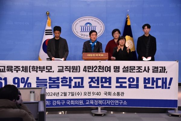 강득구 의원은 “학부모, 초등학교 교원, 교육행정직, 돌봄공무직원 등 이해관계와 입장은 저마다 다른 것이 설문조사를 통해 드러났다”며 “정부와 교육부는 독단적으로 정책을 추진해 학교 현장의 갈등을 심화시키지 말고 늘봄학교 전면 도입 정책을 대대적으로 재검토해 다양한 교육주체들와 사회적 합의를 거쳐야 한다”고 강력하게 촉구했다.