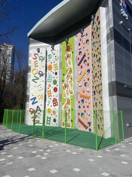 체육센터 건물 외부에는 별도 인공 암벽장을 설치해 클라이밍을 할 수 있다.