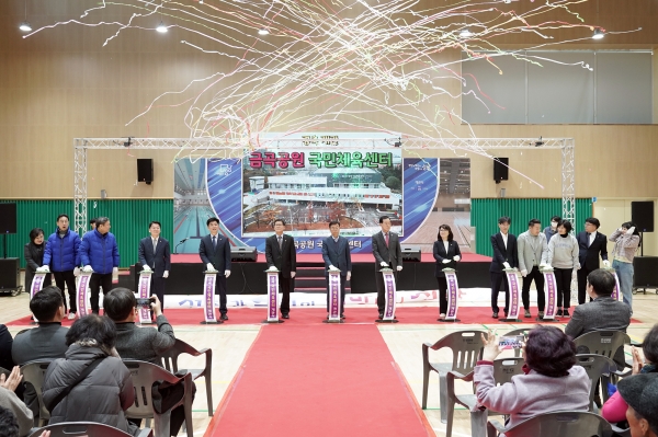 이날 개관한 금곡공원 국민체육센터는 지하 1층 ~ 지상 3층, 연면적 8609㎡ 규모로 ▲지상 1층은 길이 25m, 5개 레인의 수영장 ▲2층은 헬스장과 배드민턴·탁구를 할 수 있는 다목적체육관 ▲3층은 요가·필라테스 등을 할 수 있는 프로그램실 등이 각각 들어섰다.