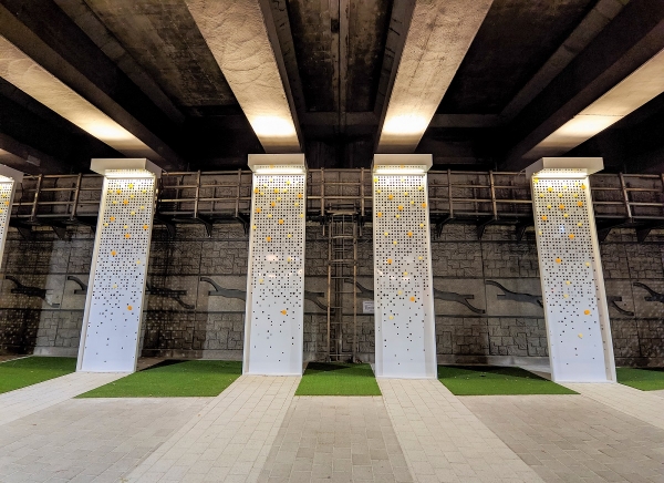 어두운 밤에는 LED 간접조명이 판형 조형물과 교각 하부를 밝혀, 환하고 따뜻한 공간으로 개선했다.