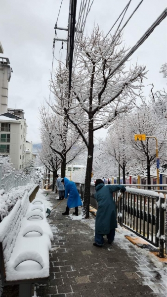 현재도 전 공무원, 각 동 유관 단체와 자율방재단을 투입해 주택가 골목길, 이면도로 인도, 육교 등에 제설제를 살포해 눈을 녹이고 도로에 쌓인 눈을 밀어내기 위한 제설작업을 계속해 실시 중이다.
