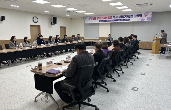 이날 간담회는 군정 운영 방향과 각 부서 정책·기획팀의 주요 시책을 공유하고 소통, 협업을 강화하기 위해 마련됐다.
