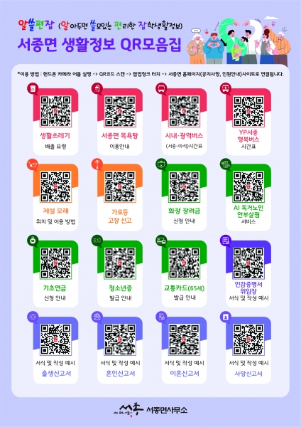 [금요저널] 양평군 서종면은 면민과 전입자의 생활정보 접근성 향상을 위해 이달부터 ‘알쓸편잡 생활정보 QR 모음집’을 제작·배포했다고 밝혔다.
