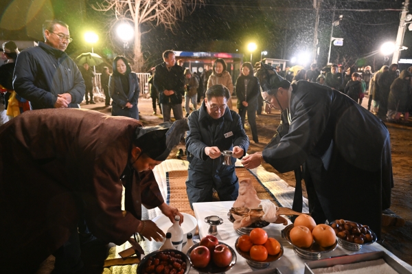 [금요저널] 전진선 군수가 지난 24일 양평군 강하면 항금리 홰동화제 현장을 찾아 한 해의 풍년과 태평을 기원했다.