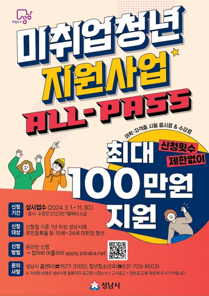 [금요저널] 성남시는 오는 3월 1일부터 11월 30일까지 ‘미취업 청년 지원사업’ 신청을 받는다.