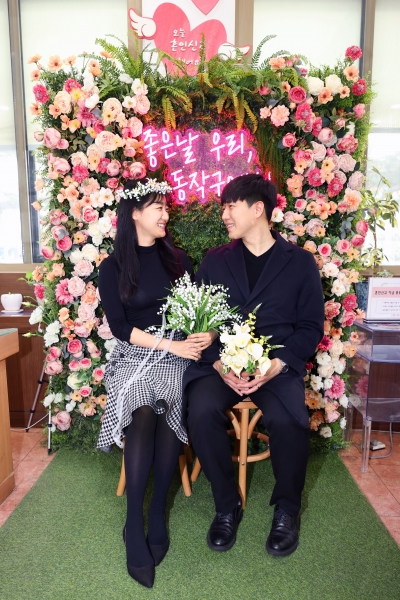 구청 1층 민원여권과에 설치된 혼인신고 포토존은 화려한 꽃 장식으로 꾸미고 “좋은날 우리, 동작구에서”라는 축하 문구를 LED 조명으로 제작해 조성됐다.