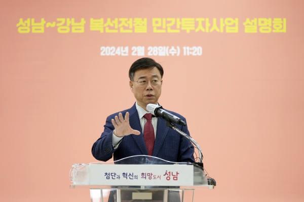 [금요저널] 신상진 성남시장은 28일 시청 한누리실에서 성남~강남 복선전철 민간투자사업 설명회를 갖고 현재 추진 중인 지하철 3호선 연장사업과 함께 ‘가칭 신강남선 민자철도 사업’도 함께 검토하겠다고 밝혔다.
