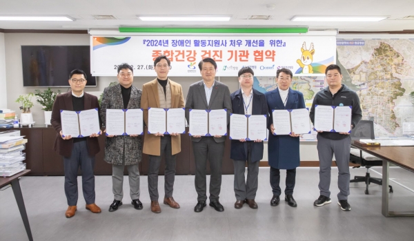 [금요저널] 인천 서구는 지난 27일 장애인활동지원사들의 종합건강검진비 지원을 위해 6개 의료기관과 ‘2024년 장애인활동지원사 종합건강검진 지원 업무 협약’을 체결해 장애인활동지원사들의 복리증진과 질높은 의료서비스 제공을 위해 상호 협력하기로 했다.