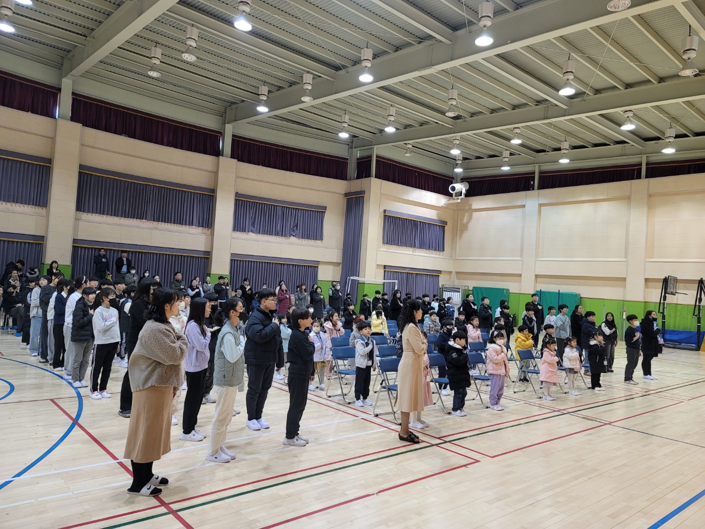 □ 새입학식에서 정인자 교장은 1학년 신입생 36명에 대한 입학 허가 선언과 입학 축하 선물을 증정하였다. 신입생 고○○학생은 “강당과 운동장이 엄청 넓어요. 교실에서 새로운 친구들을 만나 기뻐요”라며 입학의 기쁨을 나타내었다.
