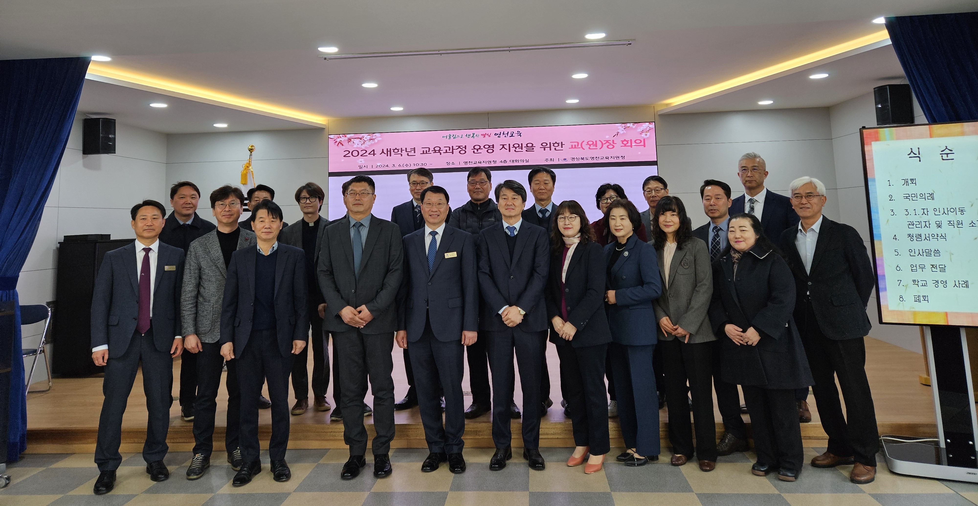 경상북도영천교육지원청(교육장 김희수)은 6일 대회의실에서 2024학년도 교육과정 운영 지원을 위한 관내 초·중등학교 교(원)장 및 교(원)감 회의를 개최했다.